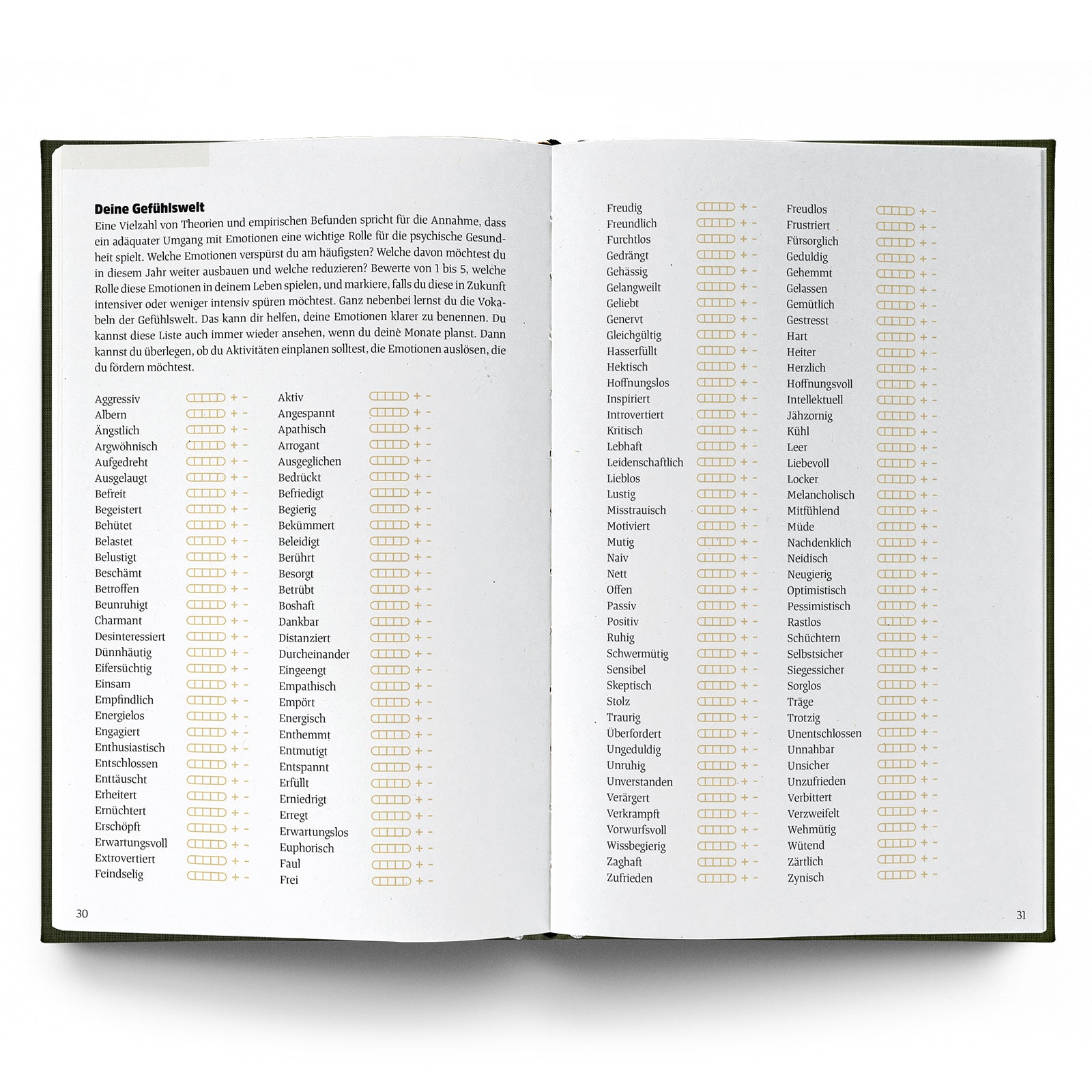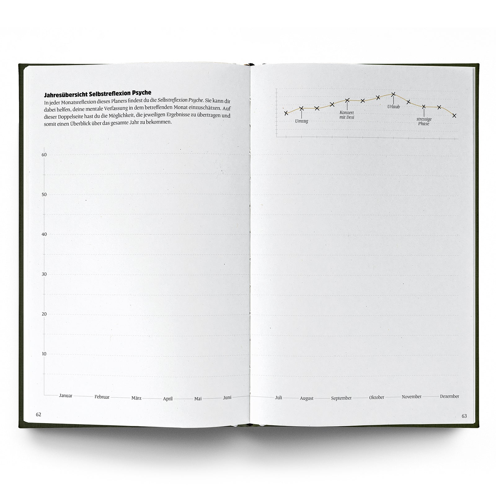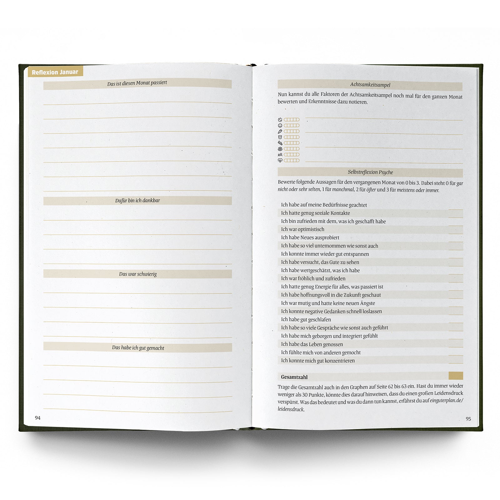 Durchdacht bis ins Detail bietet der Planer nicht nur Raum für Termine, To-dos und Notizen, sondern auch für Reflexion, Selbstreflexion und echte Fortschritte in deinem Wohlbefinden.