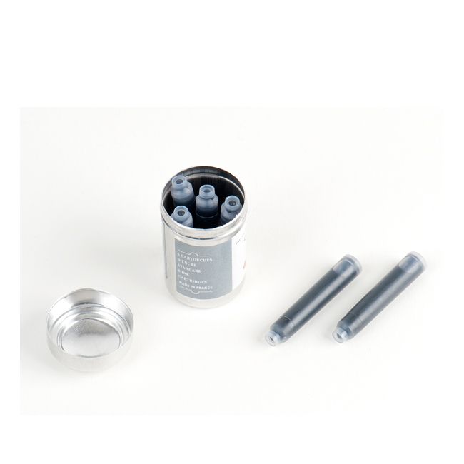 Bring Farbe in die Schrift! Diese feine Pariser Tinte ist nach altem Rezept hergestellt und für jeden Füllfederhalter mit Standardpatronen geeignet. Die Tinte ist wasserlöslich, ph-neutral, ungiftig und kann untereinander kreativ gemischt werden. In der Metalldose sind 6 Standardpatronen.