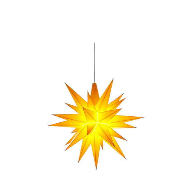 Inhalt 1 Stern, LED-Glühlampe E10 6,3 V/ 0,3 A (10+28mm), Fassung und Kabel (3 m) zum Anschluss an ein NetzgerätHersteller HerrnhuterLieferzeit 2-4 TageFarbe gelbHerstellung 100% Handarbeit aus DeutschlandMenge 1Maße ca. 13cm Ø , 25 Zacken: 17 Viereck- und 8 DreieckzackenMaterial Kunststoff