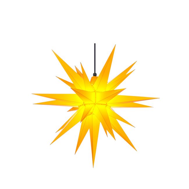 Inhalt 1 Stern zur Selbstmontage: 17 Viereck- und 8 Dreieckzacken, Abdeckplatte, Kunststoffklammern, Aufhängeschnur, MontageanleitungHersteller HerrnhuterLieferzeit 2-4 TageFarbe gelbHerstellung 100% Handarbeit aus DeutschlandMenge 1Maße ca. 68 cm Ø , 25 Zacken: 17 Viereck- und 8 DreieckzackenMaterial Kunststoff